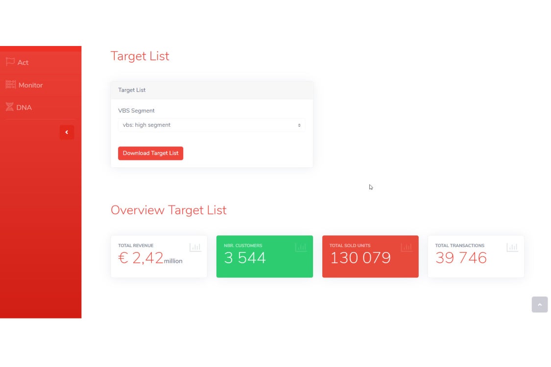 - Ability to develop target lists containing subsets of recommended customers to target with your next campaign