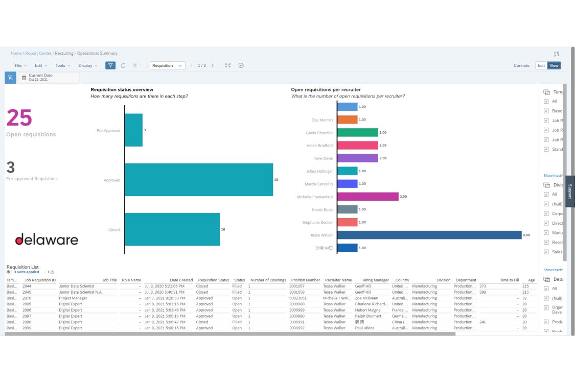 In response to that, we offer you a collection of ready-to-use recruiting dashboards built with the new SuccessFactors People Analytics - Report Stories*.