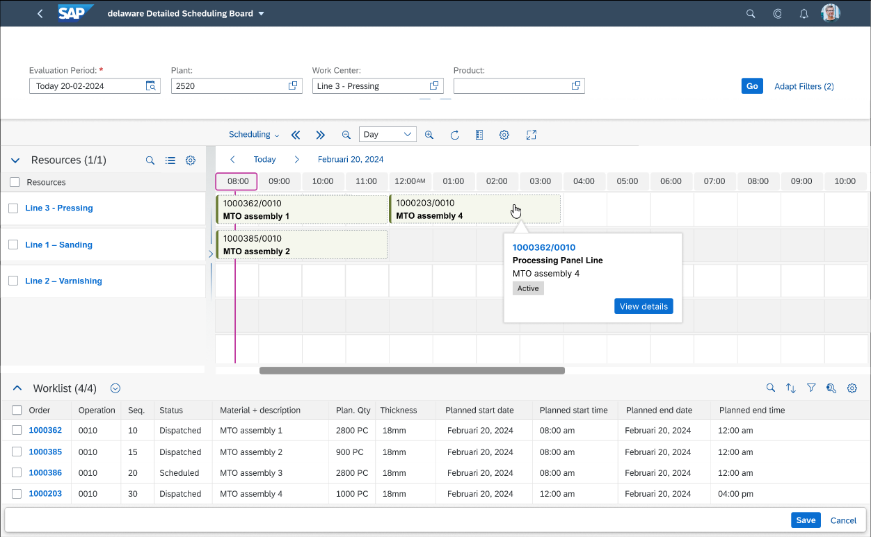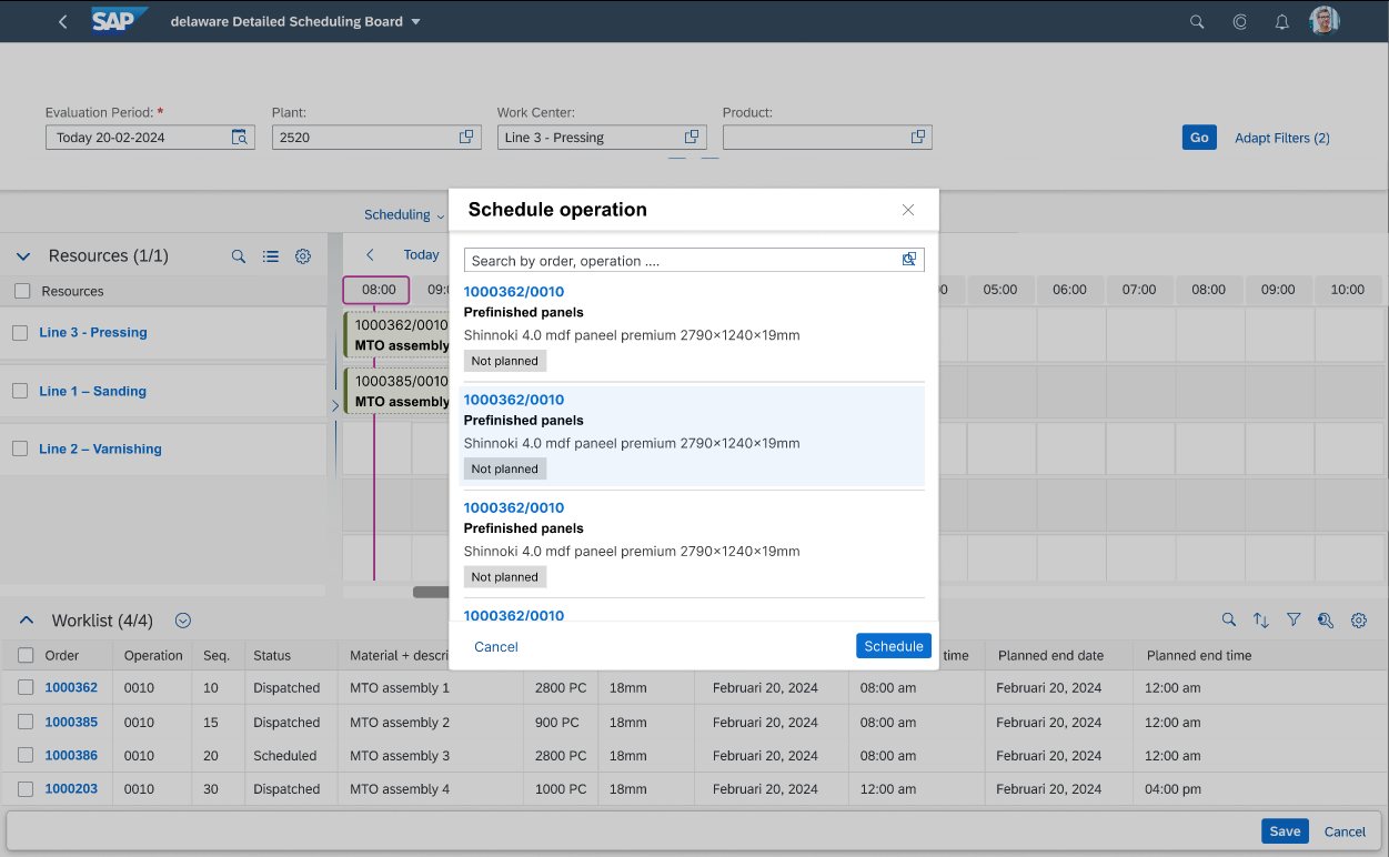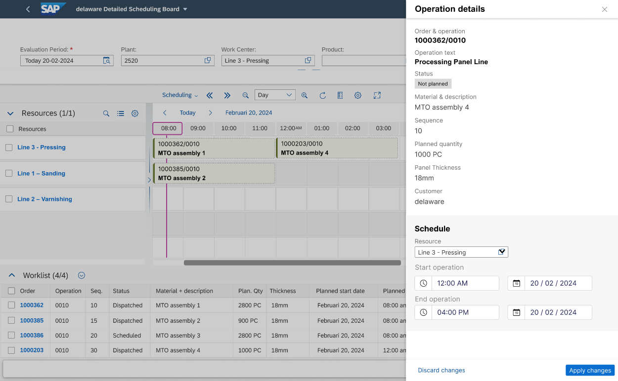 The delaware detailed scheduling board provides manufacturers with an intuitive and efficient tool to schedule operations based on real-time insights. With its user-friendly interface, planners can easily prioritize and align operations, adjust schedules with ease, and consult all relevant information in a detailed overview. This results in increased productivity, reduced downtime, and improved customer satisfaction.