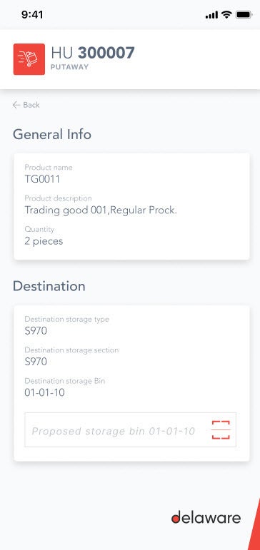 delaware helps you launch the cloud SAP EWM solution with a set of integrated mobile transactions based on best practices and our years of experience in the field of logistics. Mobile transactions enable you to handle warehouse processes via mobile scanning. Current offer: EWM Putaway and EWM Picking mobile transactions