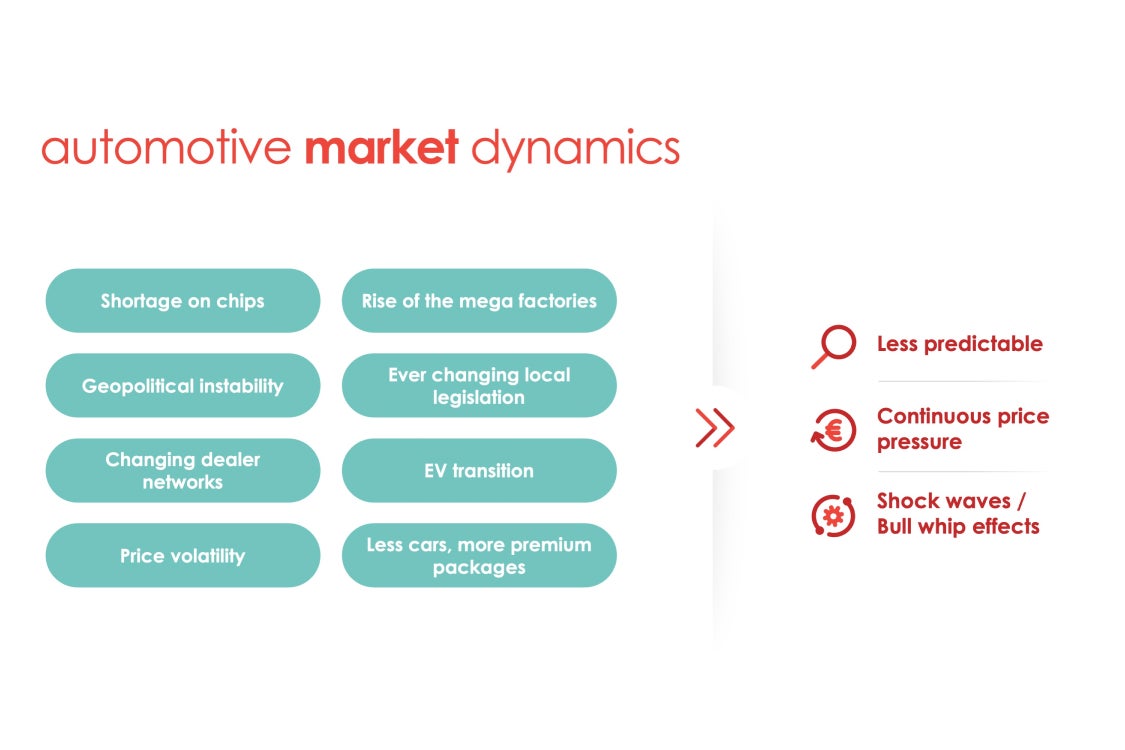 These days, imposed by the many causes, automotive supply chain are less predictable, has to cope with a constant price pressure, and deal with new vehicle types that phase in more frequently.