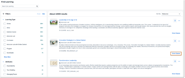 • For learners, smarter search experience and dynamic upcoming-class listings make discovering and enrolling in training easier.