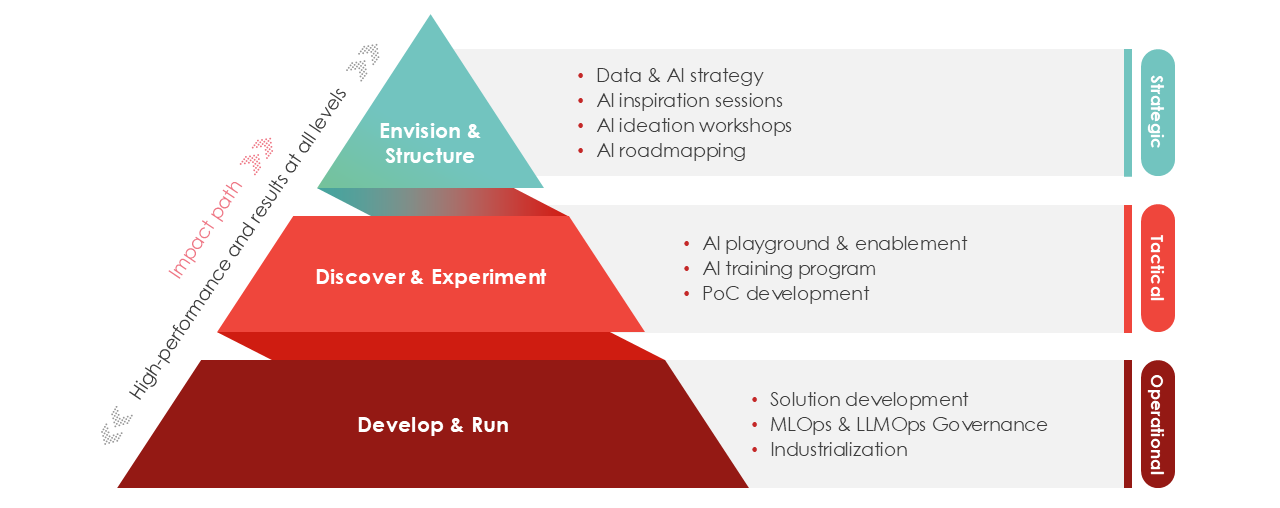 delaware helps organisations turn AI ambition into practical and measurable outcomes. With a structured approach we guide organisations from defining the right strategy to implementing scalable AI solutions that support everyday operations.