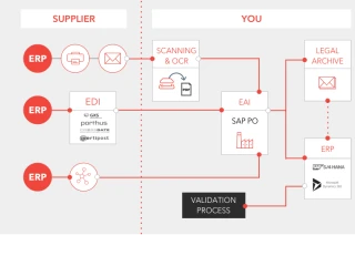 Une solution complète et parfaitement intégrée à votre plateforme ERP ou à votre plateforme financière automatisera vos processus de scanning, de reconnaissance, d’enregistrement, de validation et d’archivage des données de facturation, quelle que soit la source de la facture :
